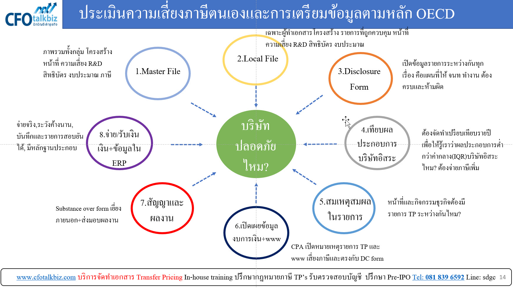บริษัทผมเริ่มรับงานบริษัทมหาชนเพิ่มพบรายการระหว่างกันในกลุ่ม บมจ.ที่มีความเสี่ยงภาษีสูง เนื่องจากบริษัทไม่เข้าใจแต่มีรายการแบบตั้งใจหรือไม่ตั้งใจการเปรียบเทียบราคาตลาดและการรวบรวมหลักฐานและนโยบายของ OECD "ปัญหาของเขา แต่เป็นงานปรึกษาของผม"